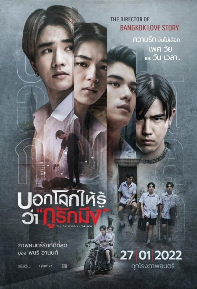 “Tell the world…I love you”, a romantic action drama that reflects society. That comes with a 90's vibe by director "Pach Anon" from "Friend, I love you", a story of friendship and love between a man, Bong and Keng. Two teenagers from two different worlds meet. Ready to fight with unexpected events. Get involved and be chased by a gang of thugs, led by "Nick Kunathip" to the proof that will change their world forever.