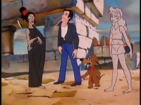 In this animated spin-off of the long running hit TV series, "Happy Days", the Fonz (voiced over by Henry Winkler), Richie Cunnigham (voiced over by Ron Howard) and assorted pals stumble aboard a time machine that whisks them far away from the Milwaukee, Wisconsin of 1957. Fun and adventure follow as the gang travel forward and backward in time and place.