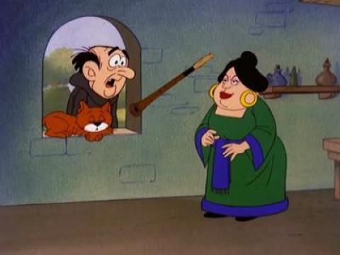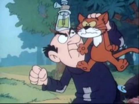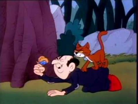 The Smurfs are tiny blue creatures that live in mushroom houses in a peaceful forest. They repeatedly try to outwit Gargamel, an evil sorcerer, his apprentice, Scruple, and his mangy cat, Azrael.